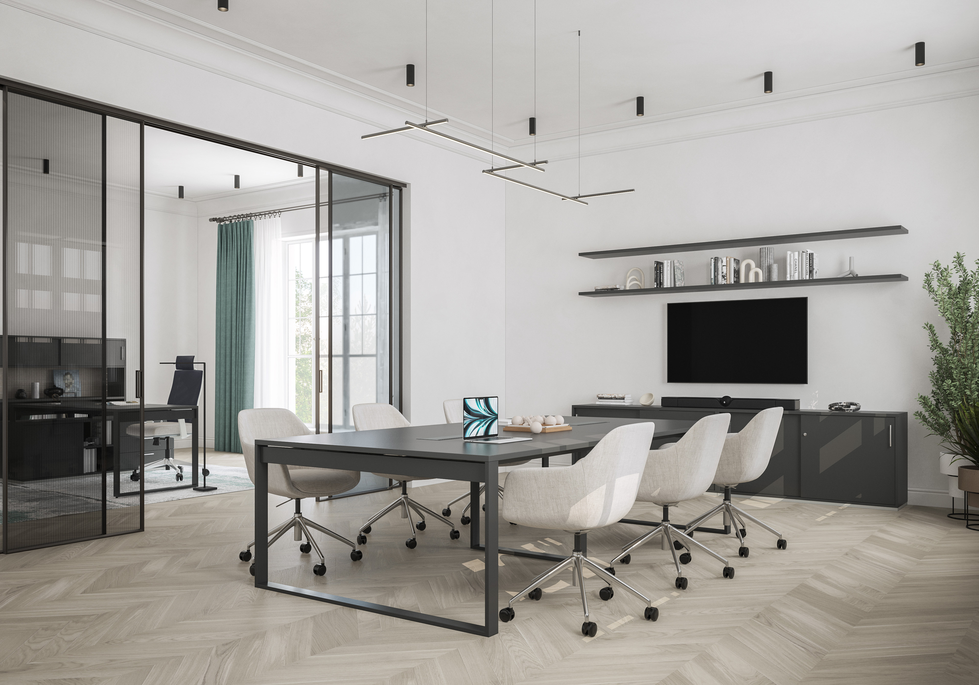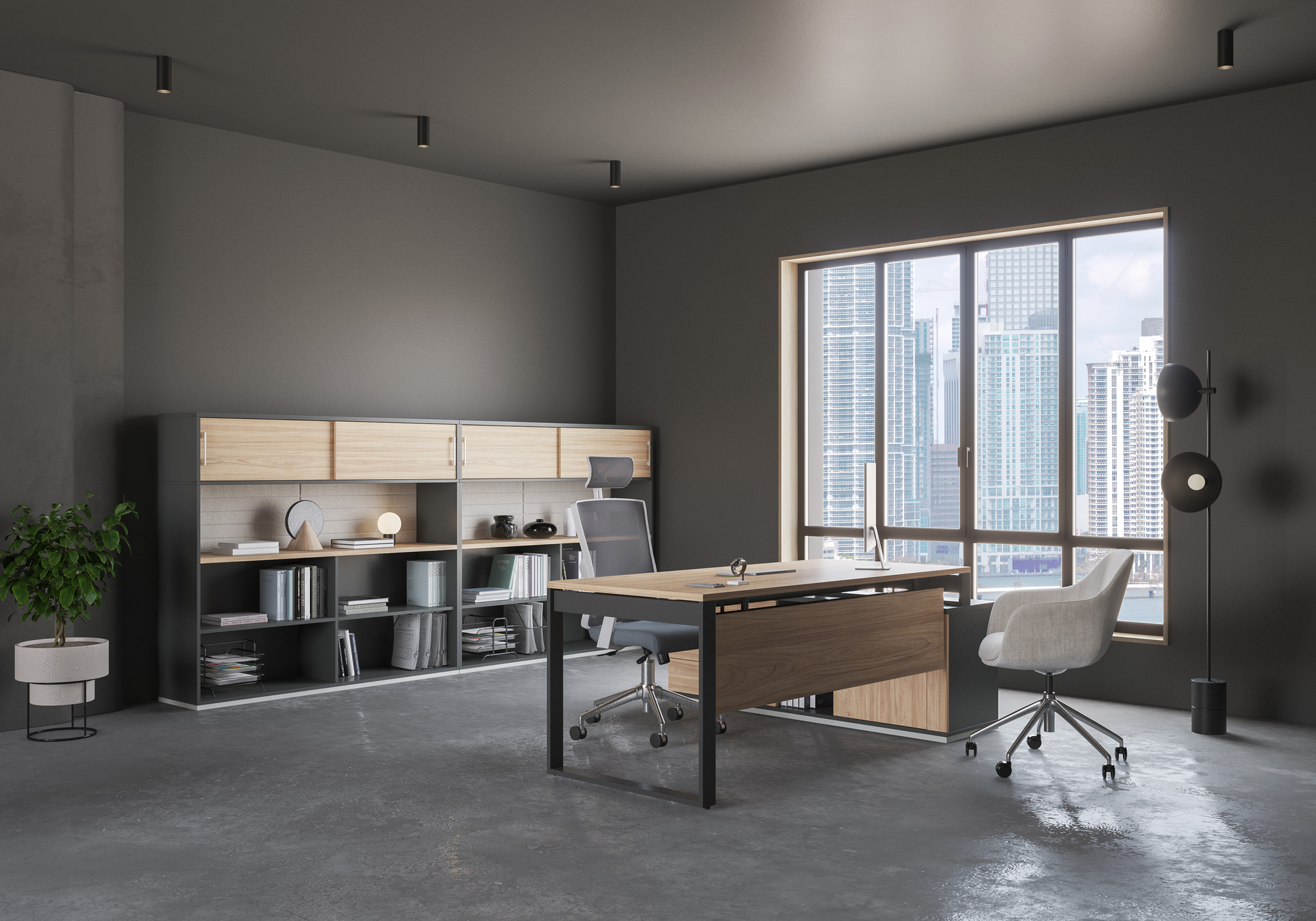 Кабинет для руководителей ALLEGRO сочетает практичность, функциональность и чистоту дизайна. Серия отмечена лаконичными формами и нейтральной палитрой: светлый древесный тон с белым выглядит естественно и гармонично. Более выразительные варианты создаются на контрасте темного антрацита с белым и древесиной. Благодаря широкому набору модулей ALLEGRO идеально подходит для любого стиля — от классики до индустриального или джапанди и их сочетаний.