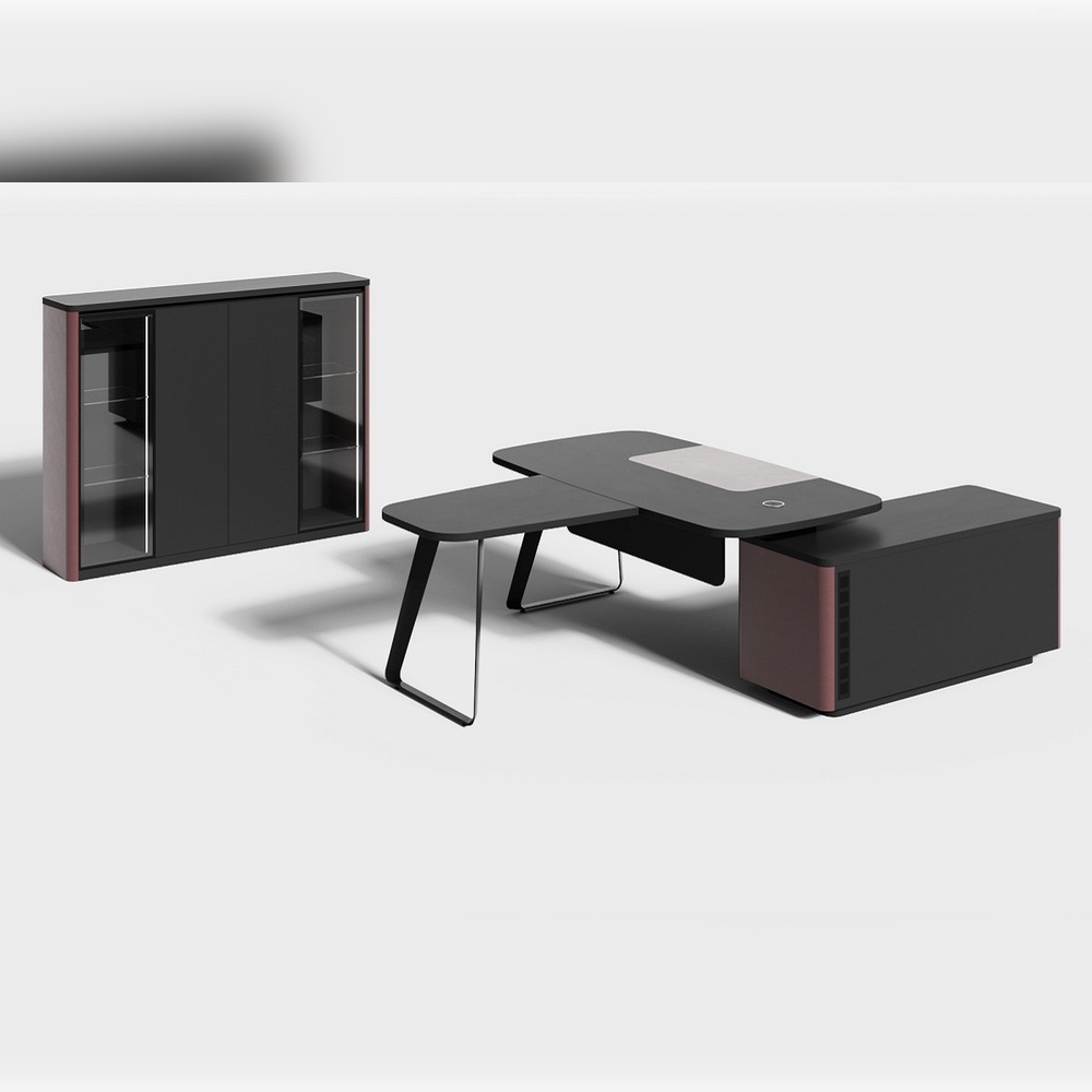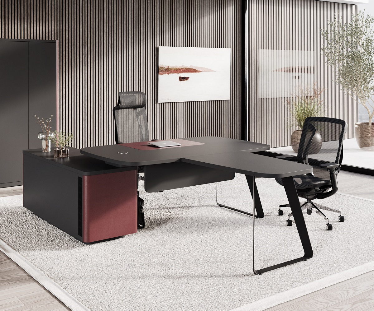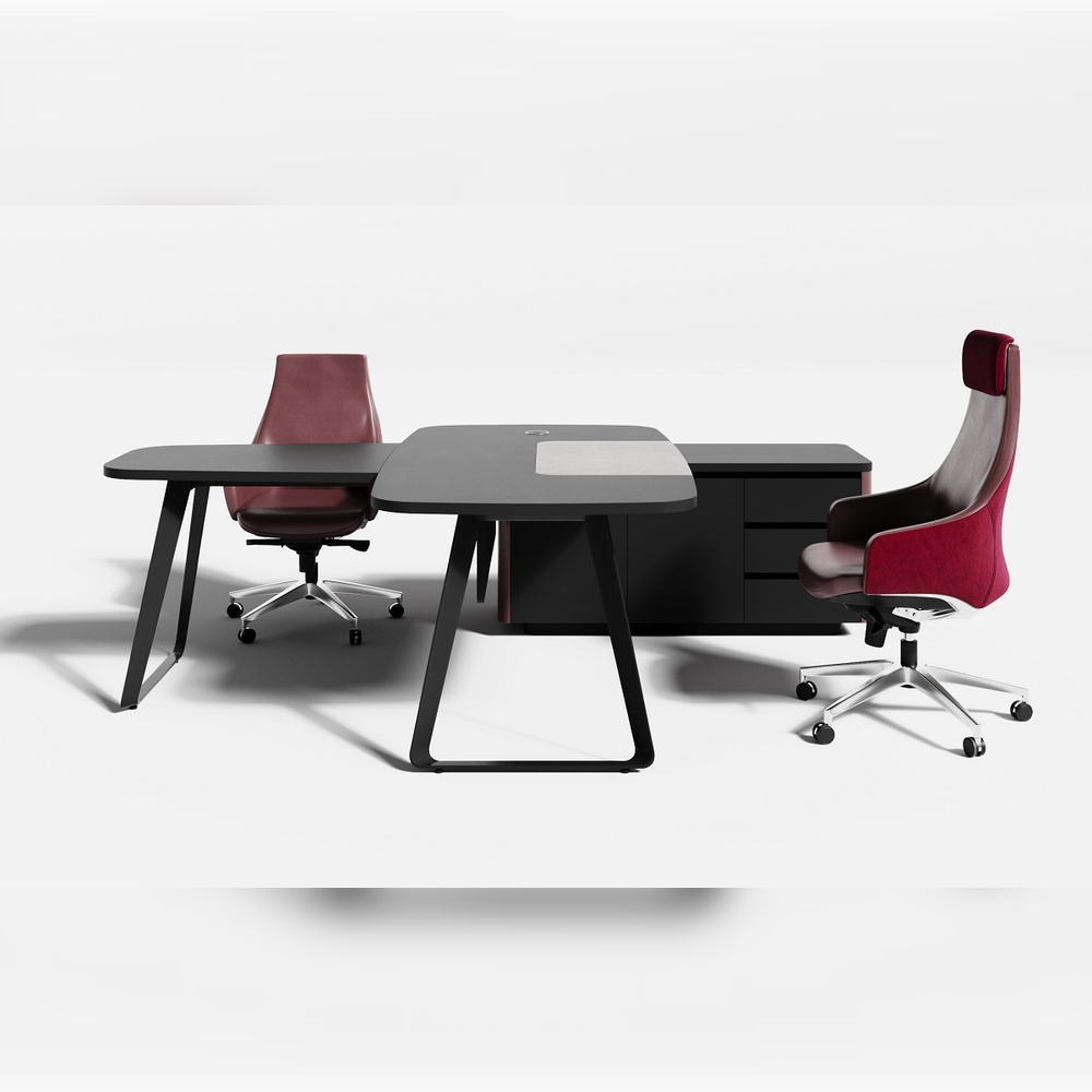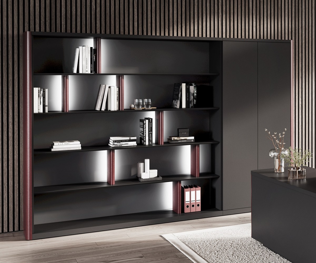 Новая экономичная линейка кабинета DRIVE идеально подходит для создания комфортной и продуктивной рабочей среды. Благодаря оригинному дизайну с кожаными вставками, разнообразию предметов и их сочетаний эта коллекция станет отличным решением для обустройства вашего офиса. Письменные столы из серии гармонично сочетаются с высокими шкафами и стеллажами с подсветкой. Единый стиль ансамбля достигается за счет изогнутых кожаных вставок на боковинах тумб и шкафов, а также кожаных экранов рабочих столов.