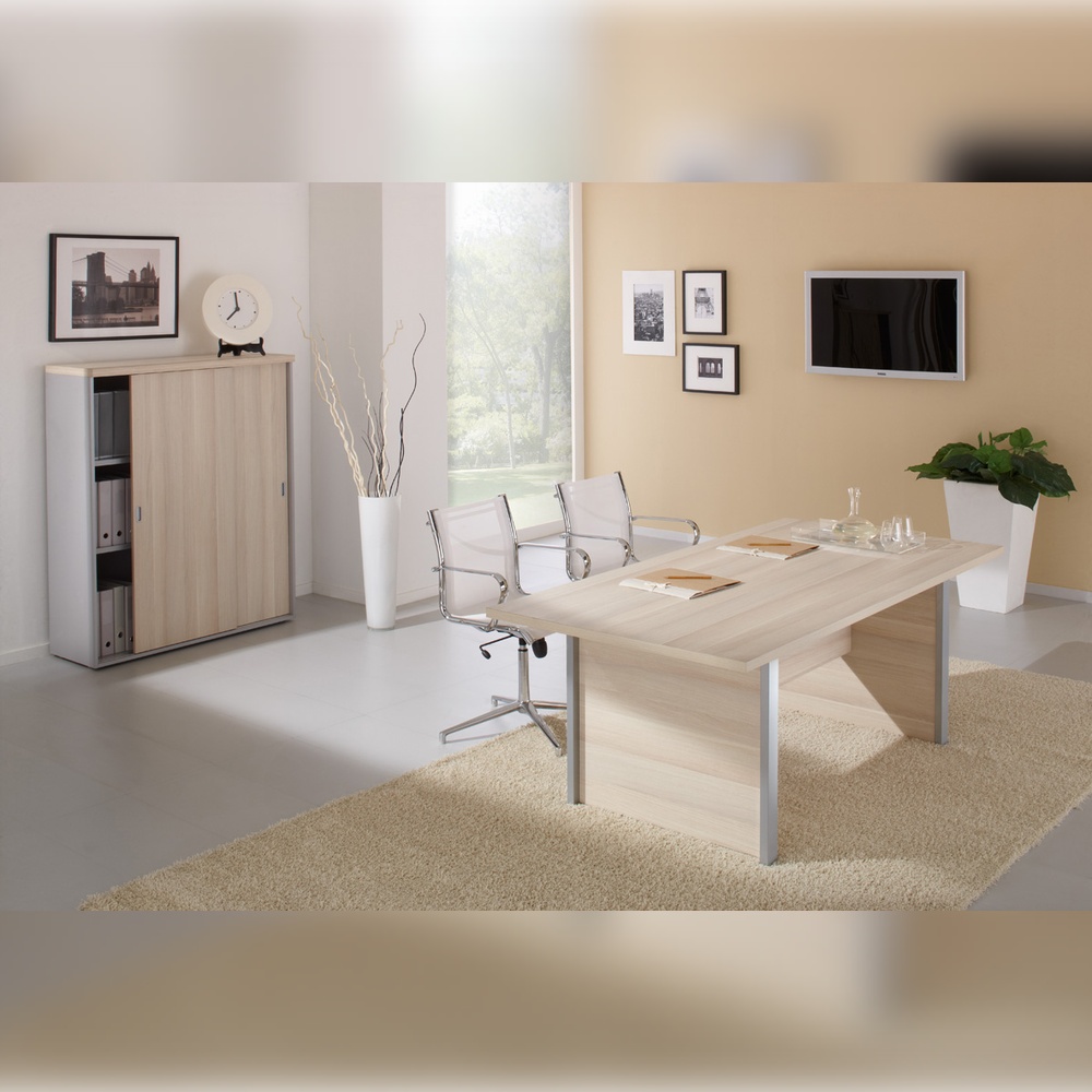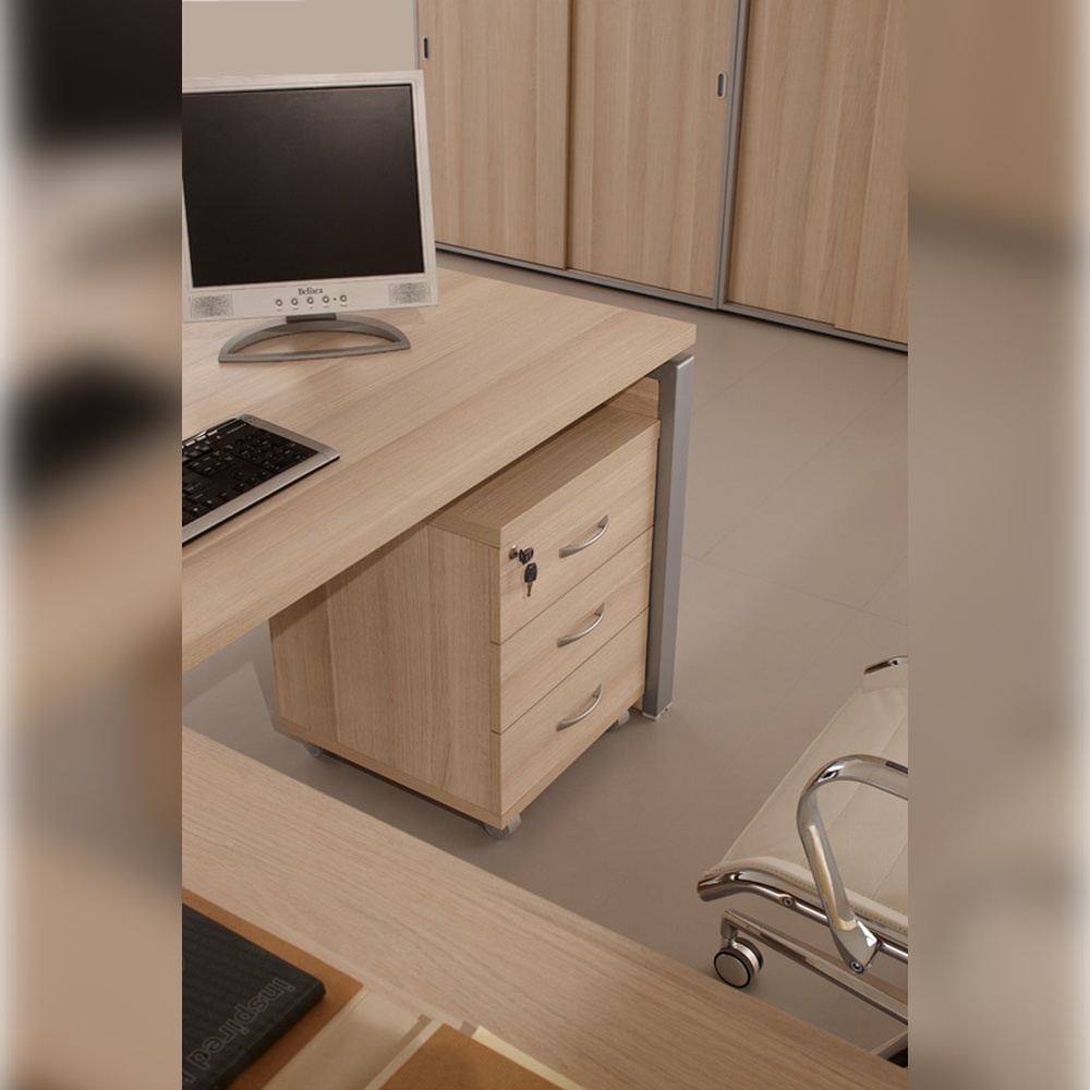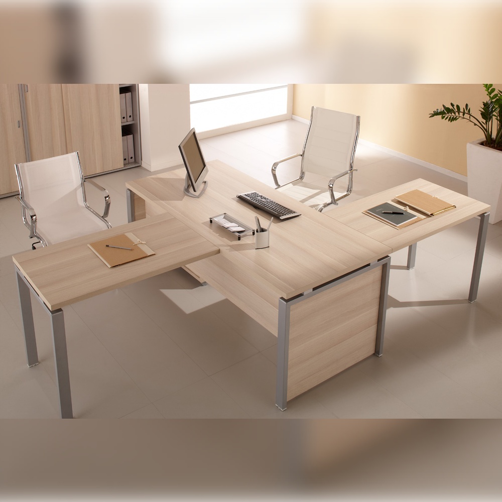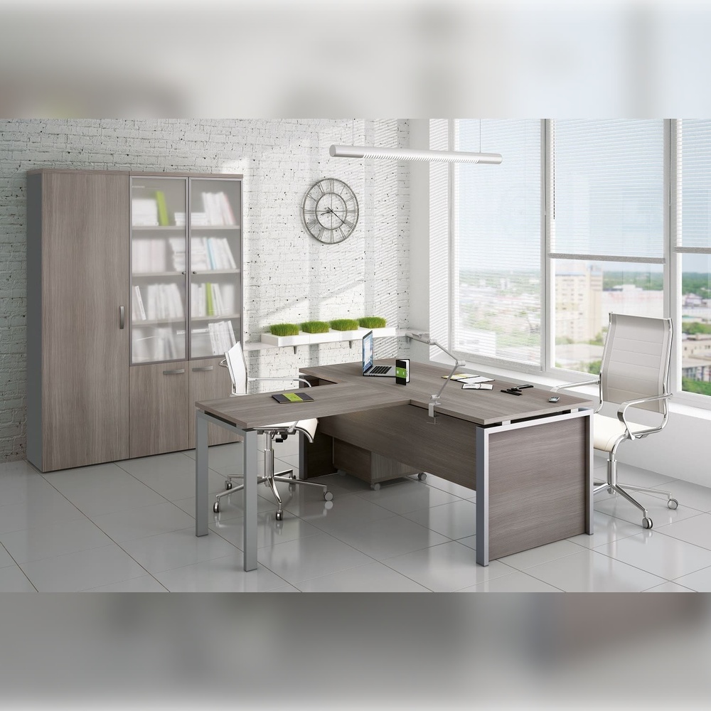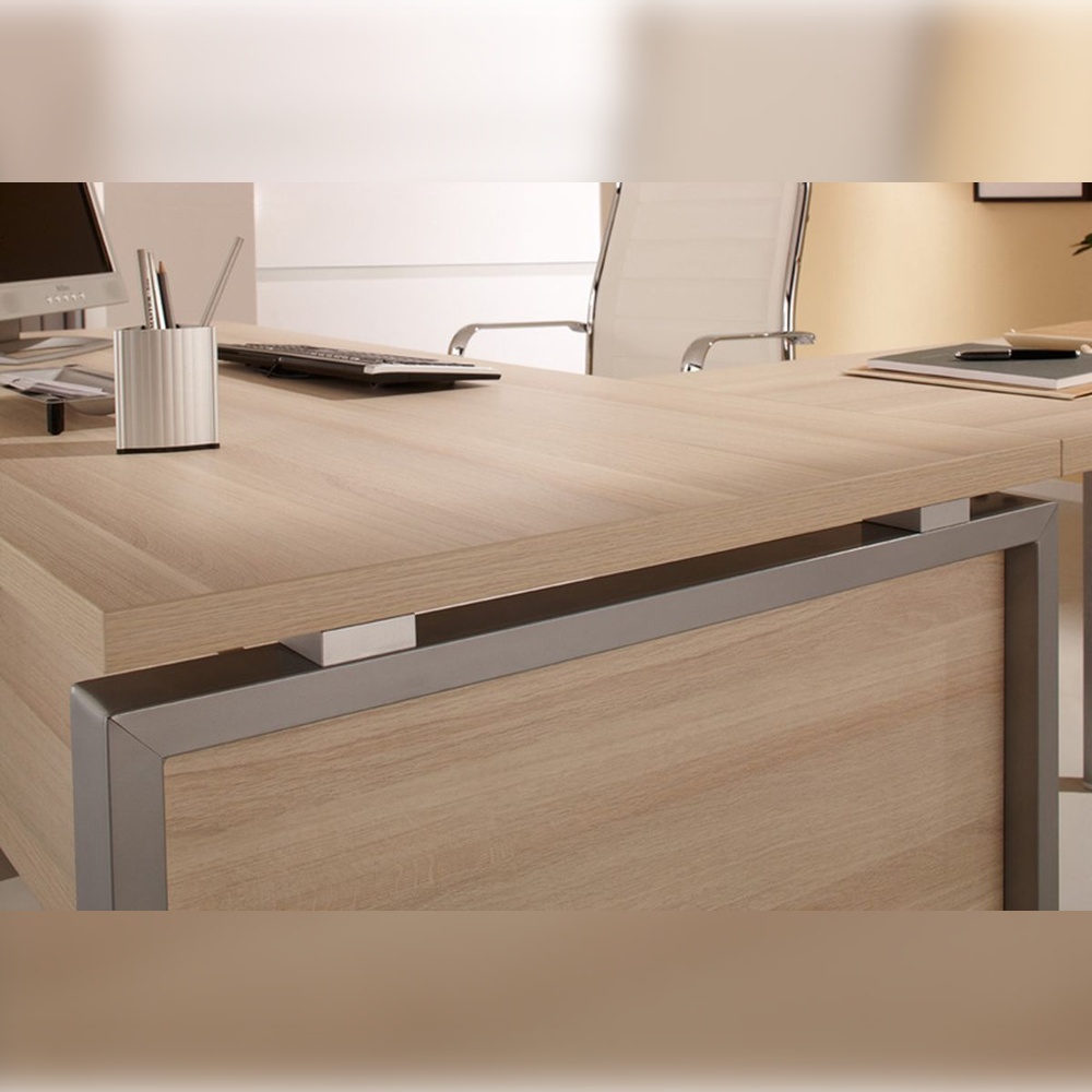 FLASH — современный кабинет для целеустремленного и энергичного руководителя, который ценит новые тенденции и креативные решения. Современный кабинет предполагает инновационные дизайнерские решения, например использование металлических опор с вставками из ЛДСП. Такой подход выделяет FLASH среди множества аналогичных моделей, наделяя его особой индивидуальностью. Доступны два цвета корпуса: дуб 131 и лиственница, которые гармонично сочетаются с опорами каркаса в серебристом металлик. Оригинальные прокладки между столешницей и боковой опорой придают столу руководителя визуальную лёгкость.