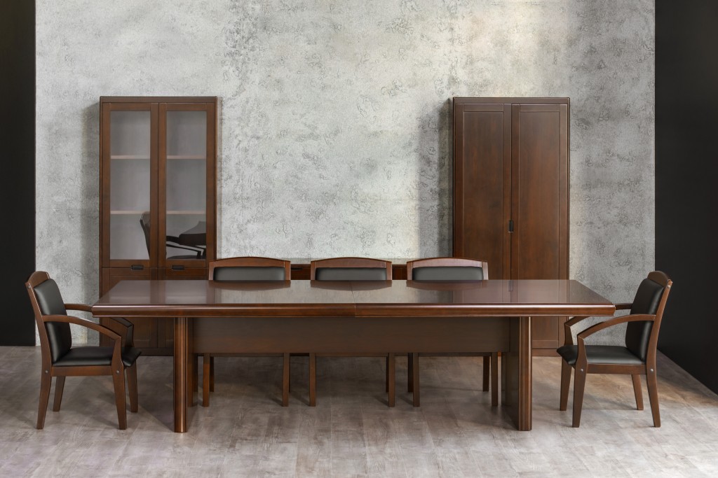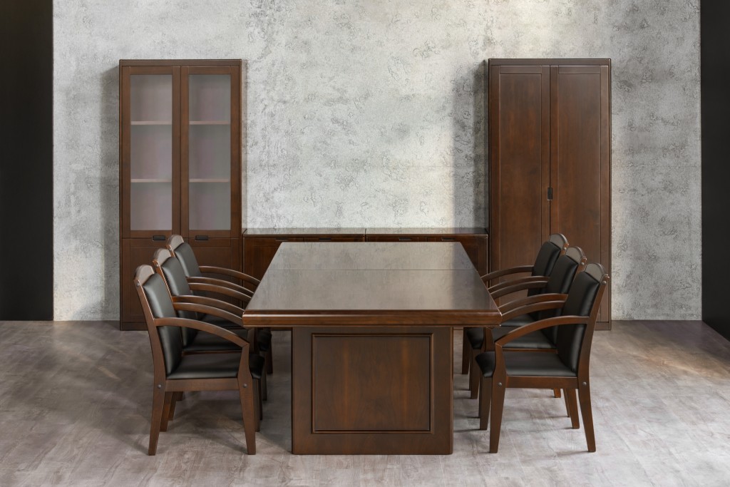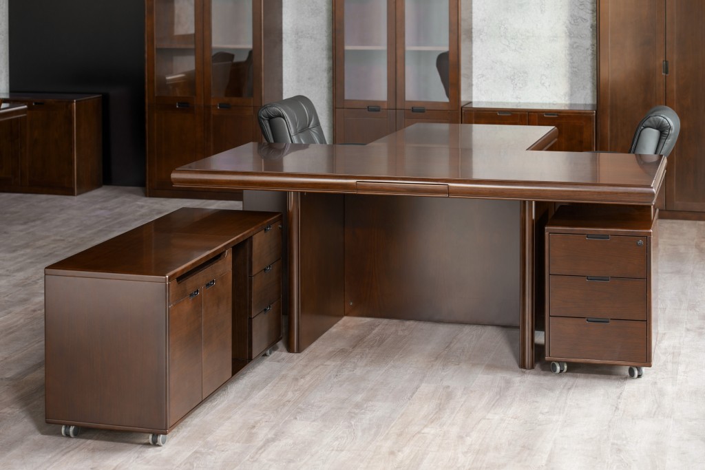 Серия мебели PRINCETON – это гармоничное сочетание современного дизайна и продуманных функциональных решений, идеально подходящее для офисных пространств. Основные столы изготавливаются из шпонированного МДФ и ДСП с внушительной толщиной столешницы 80 мм и высотой 780 мм, оснащенные выдвижным ящиком в столешнице для удобного хранения принадлежностей. Шкафы серии также выполнены из шпонированного МДФ и ДСП, с каркасами толщиной 19 мм и выразительными декоративными топами толщиной 50 мм, обеспечивающими надежность и стиль. Тумбы в коллекции имеют такой же прочный каркас и отличаются изысканными деталями, включая центральный замок и прорезиненные колеса для легкой мобильности. Дополнительные наборные элементы конференц-столов с толщиной столешниц и опор 45 мм также выделяются скругленными формами, создавая обстановку для продуктивных встреч. Мебель PRINCETON - это не только функциональность, но и стиль, выполненный с учетом современных тенденций.