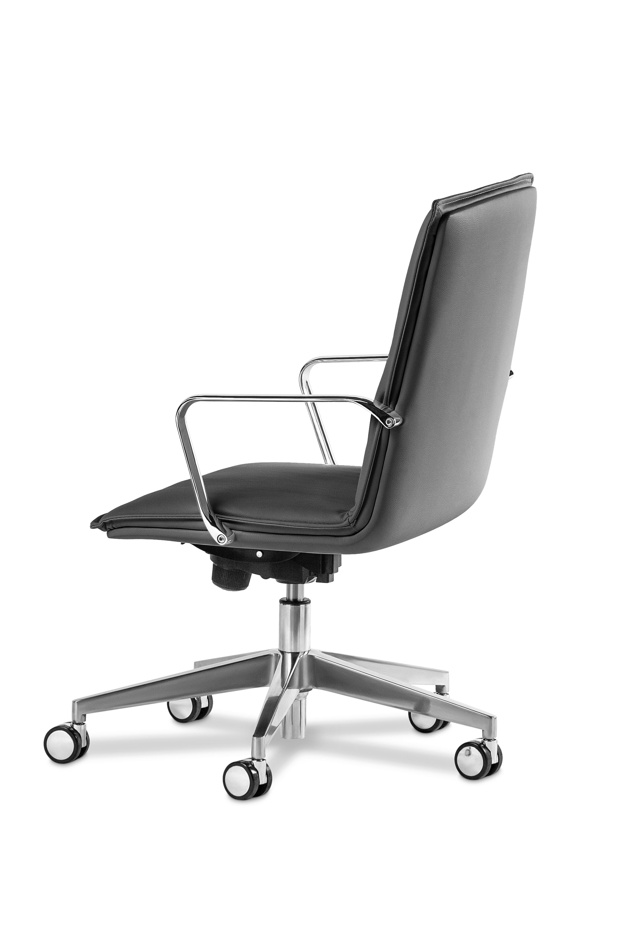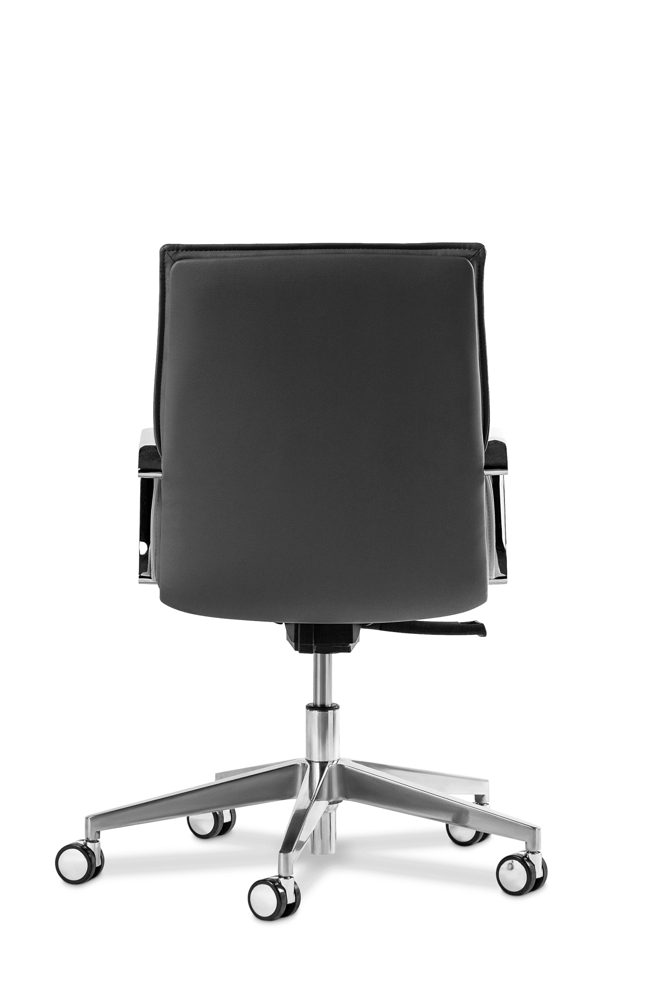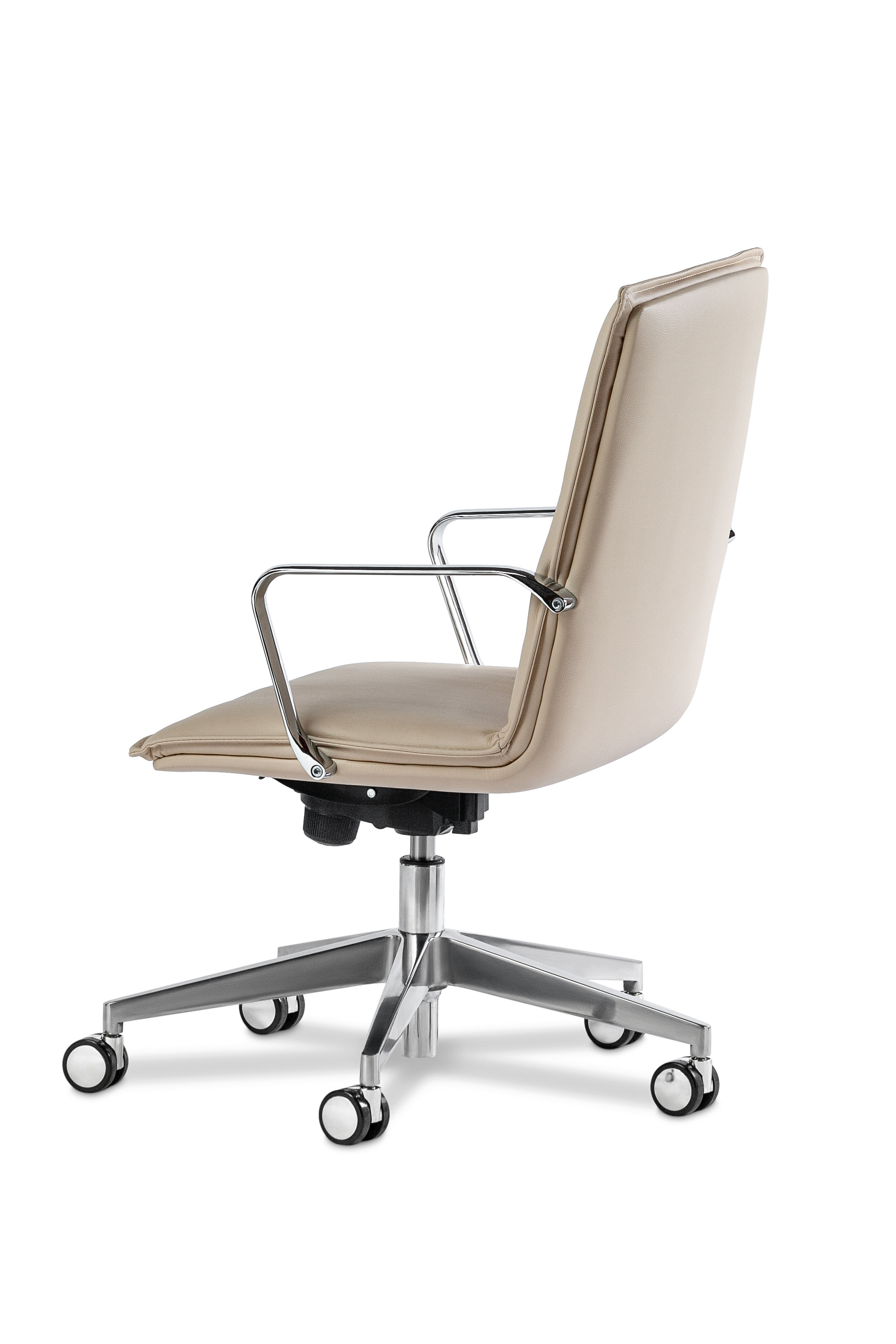 Кресло для руководителя Epsilon S-line B выполнено из натуральной кожи с кожзамом на задней части спинки. Хромированные подлокотники и крестовина придают ему стильный вид. Механизм мультиблок позволяет наклоняться и фиксироваться в четырех положениях, а также регулирует жесткость качания под вес пользователя. Оснащено прорезиненными хромированными колесами. Газ-патрон третьей категории стабильности выдерживает нагрузку в 200.000 циклов при статической нагрузке 80 кг, с минимальным срабатывающим давлением 21,5 кг и максимальным около 150 кг.