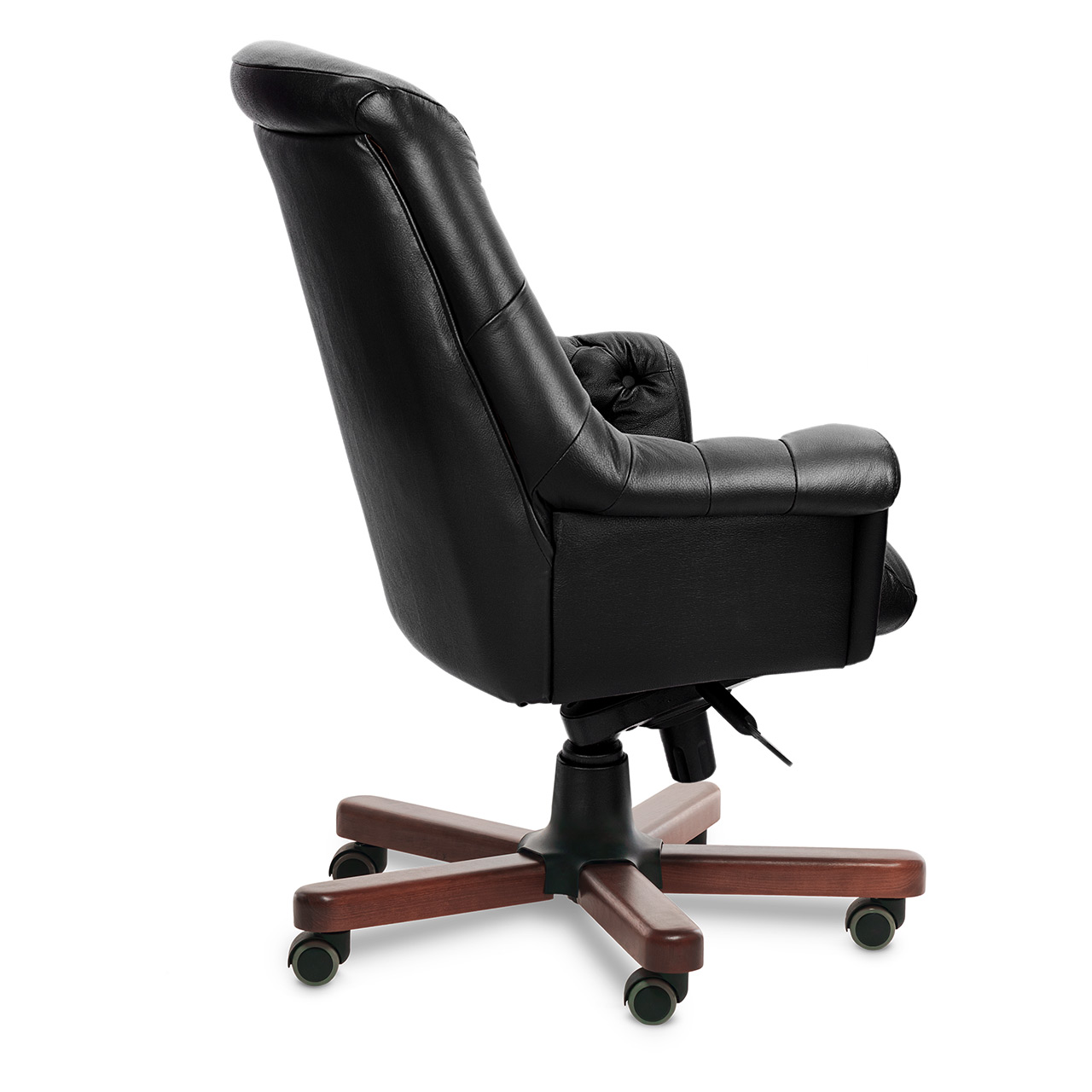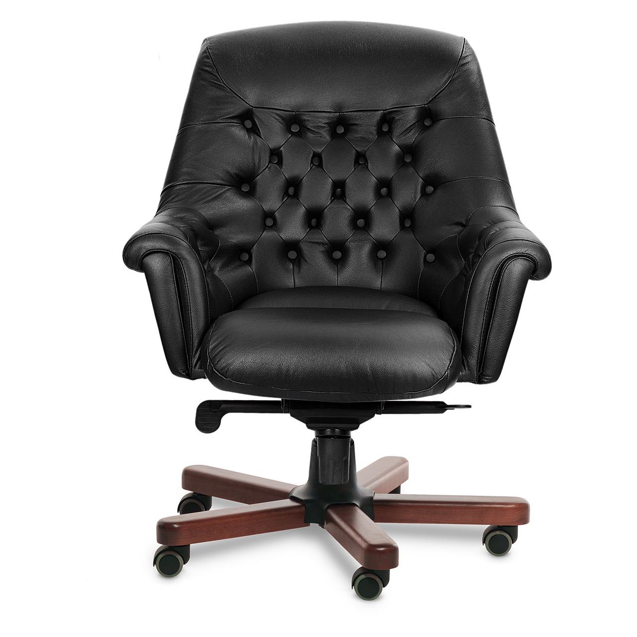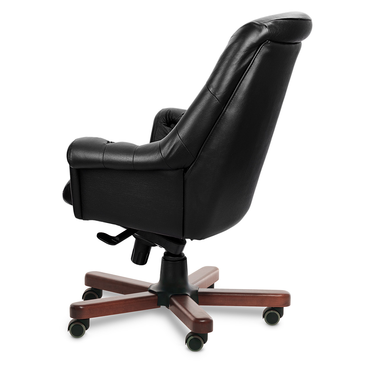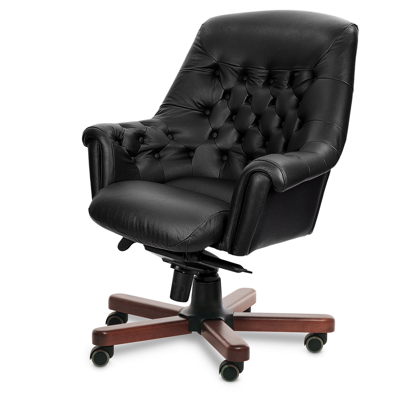 Кресло Zurich В — это эксклюзивная модель в бизнес-премиум категории, зарекомендовавшая себя в эксплуатации. Оно имеет низкую спинку с деревянными накладками и эргономичную чашеобразную форму. Каркас из березы и сосны монтируется с проклейкой, создавая прочную конструкцию. Спинка, подлокотники и сиденье объединены, обеспечивая поддержку в вертикальном и горизонтальном направлениях. Толщина поролона составляет 90 мм для сиденья и 50 мм для спинки, что гарантирует долговечность. Кресло оснащено механизмом качания с регулировкой под вес и фиксируется в четырёх положениях. Газо-масляный амортизатор поддерживает нагрузки до 150 кг. Чехол изготовлен из натуральной кожи или кожзама, с утяжками и пуговицами, а материалы являются экологичными и износостойкими. Металлическая крестовина выдерживает нагрузку до 150 кг, а ролики обеспечивают сохранность пола.