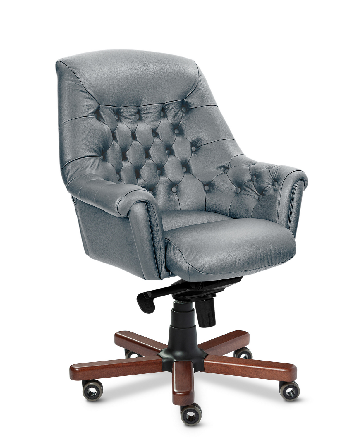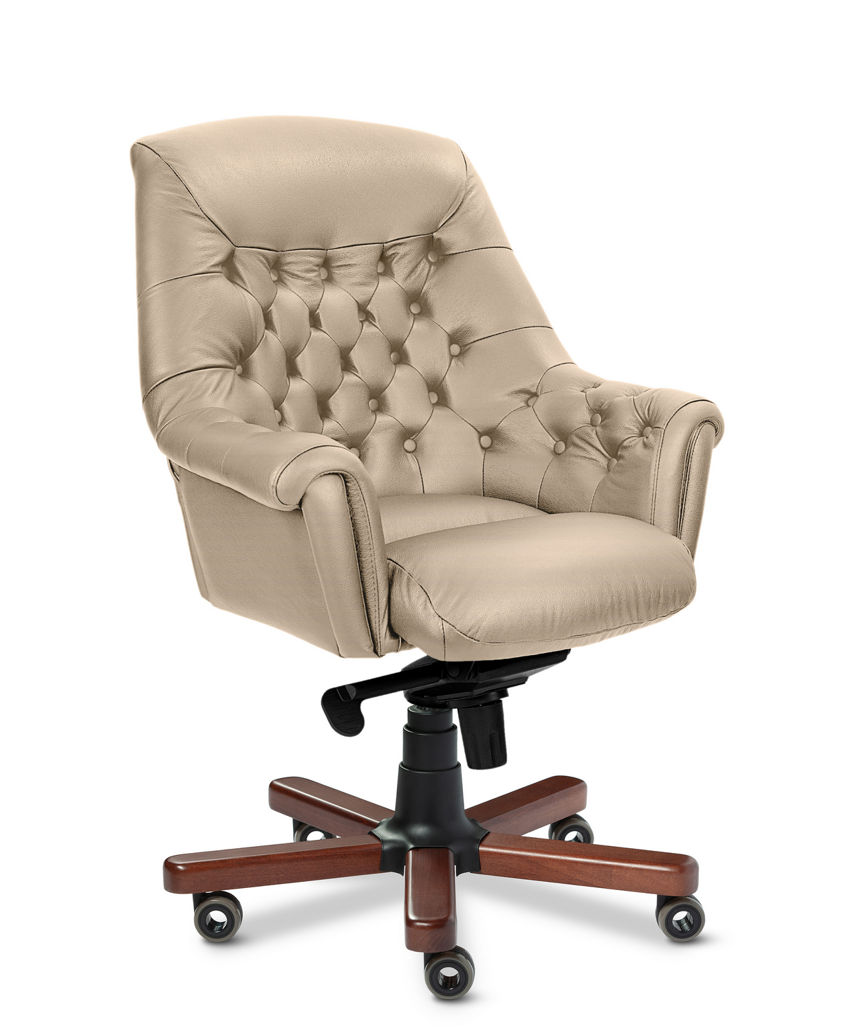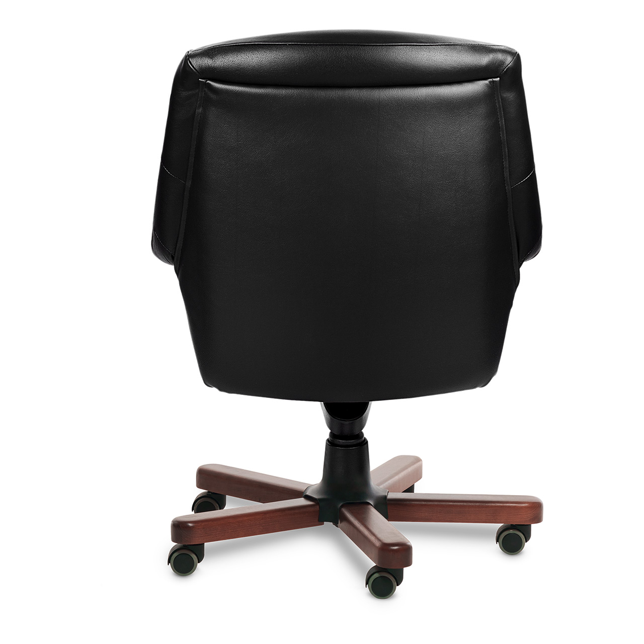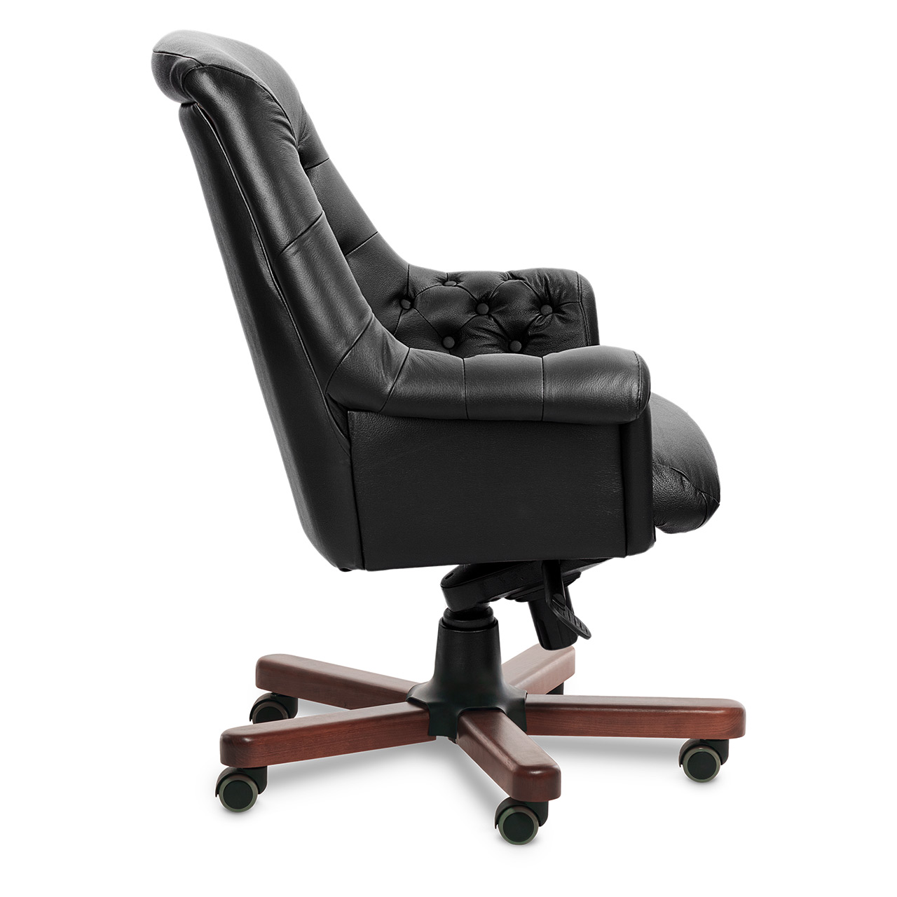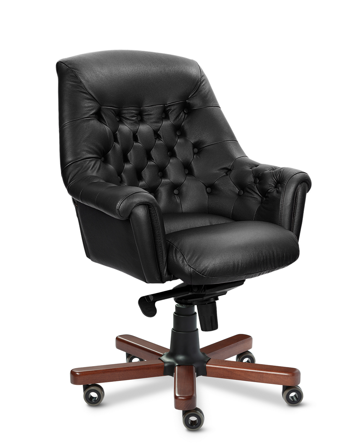 Кресло Zurich В — это эксклюзивная модель в бизнес-премиум категории, зарекомендовавшая себя в эксплуатации. Оно имеет низкую спинку с деревянными накладками и эргономичную чашеобразную форму. Каркас из березы и сосны монтируется с проклейкой, создавая прочную конструкцию. Спинка, подлокотники и сиденье объединены, обеспечивая поддержку в вертикальном и горизонтальном направлениях. Толщина поролона составляет 90 мм для сиденья и 50 мм для спинки, что гарантирует долговечность. Кресло оснащено механизмом качания с регулировкой под вес и фиксируется в четырёх положениях. Газо-масляный амортизатор поддерживает нагрузки до 150 кг. Чехол изготовлен из натуральной кожи или кожзама, с утяжками и пуговицами, а материалы являются экологичными и износостойкими. Металлическая крестовина выдерживает нагрузку до 150 кг, а ролики обеспечивают сохранность пола.