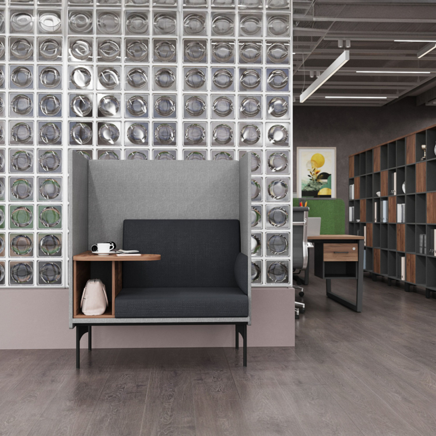 Bridge – это инвестиция в комфорт и продуктивность вашего бизнеса! Модульная система позволяет создать как индивидуальное рабочее место, так и уютную зону отдыха. Встроенный столик, минималистичный дизайн, полная кастомизация цветов и тканей – все для адаптации под ваш уникальный проект!