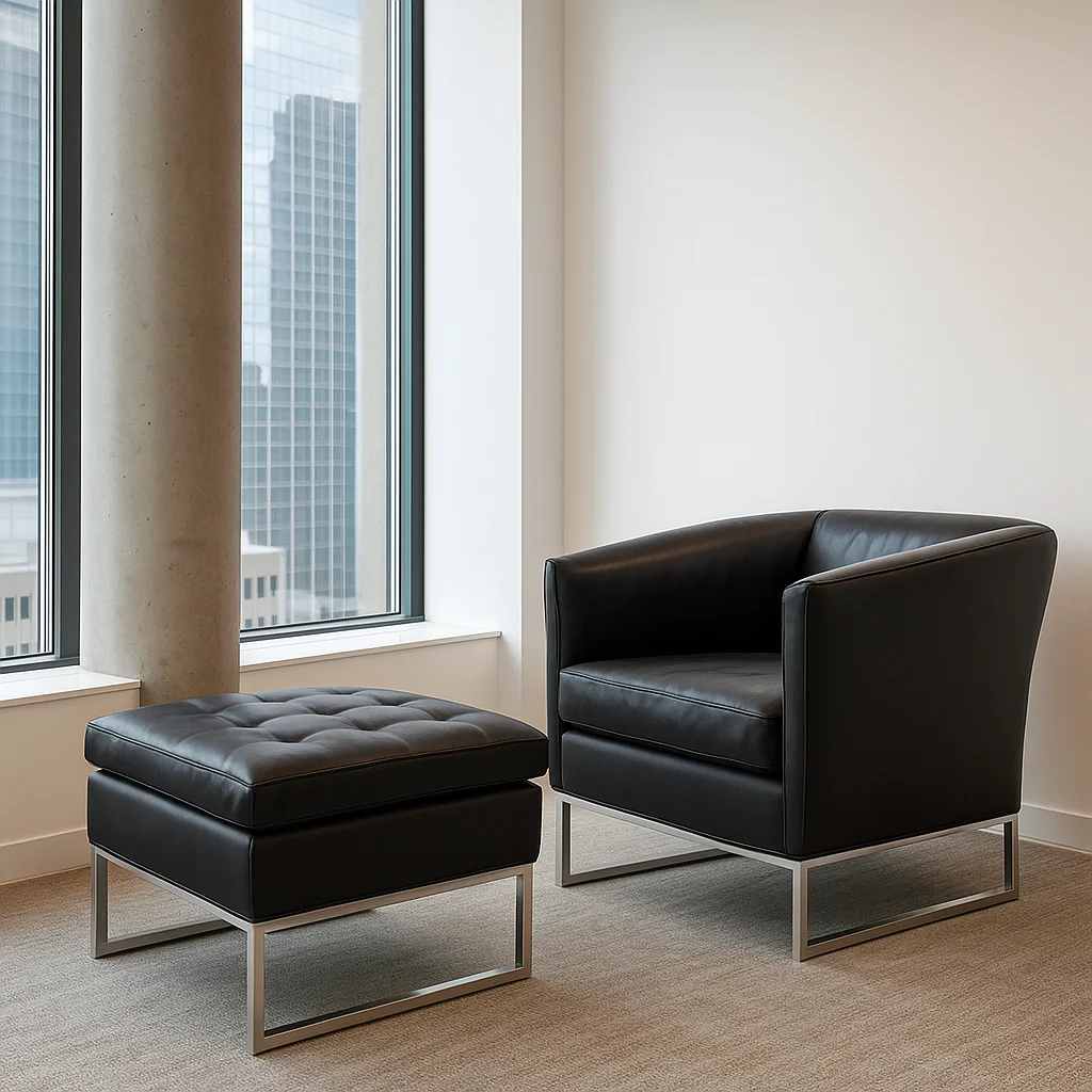 Серия мебели Лиз сочетает в себе изящество и современный стиль, выделяясь своим облегчённым металлическим каркасом и высокими п-образными опорами. Особую элегантность модели придаёт уникальная линия изгиба задней спинки и оригинально простроченная подушка сидения. Эта мебель будет отлично смотреться в VIP-зонах ожидания, переговорных комнатах, кабинетах руководителей, а также в холлах отелей, клубов и ресторанов, создавая атмосферу утончённого стиля и комфорта.